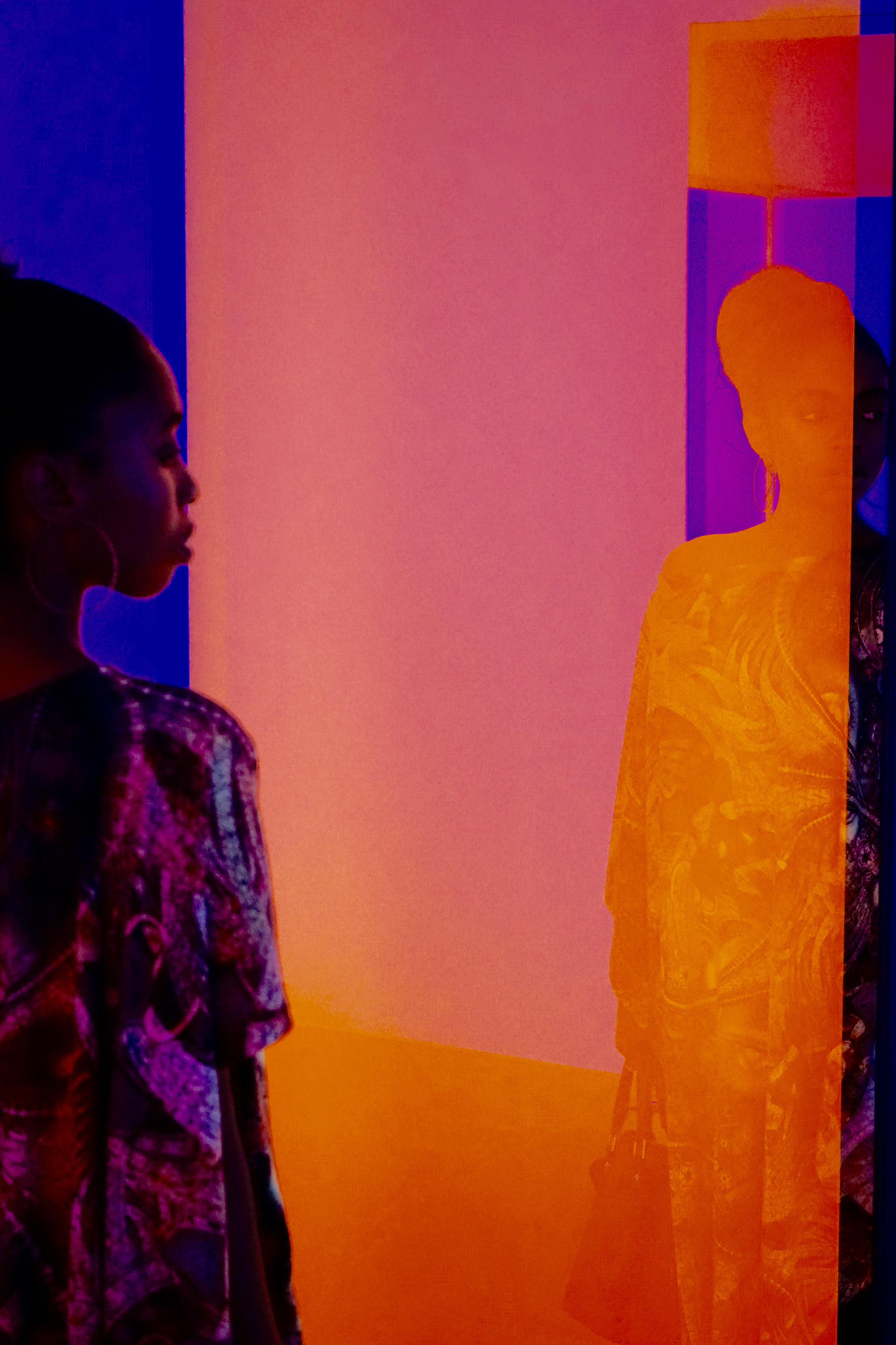 Phillip K. Smith III lightwork sculptures create a ambient environment. For this personal project I focused on silhouetting Diane. Leaving a contrast between color and form. For a grand look select any photo of your choose to zoom..